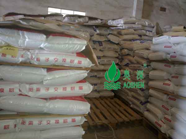 樹(shù)脂在使用一段時(shí)間后,要進(jìn)行再生處理,即用化學(xué)藥品使離子交換反應(yīng)以相反方向進(jìn)行,使樹(shù)脂的官能基團(tuán)回復(fù)原來(lái)狀態(tài),以供再次使用。如上述的陽(yáng)離子樹(shù)脂是用強(qiáng)酸進(jìn)行再生處理,此時(shí)樹(shù)脂放出被吸附的陽(yáng)離子,再與h+結(jié)合而恢復(fù)原來(lái)的組成。(2)弱酸性陽(yáng)離子樹(shù)脂 這類(lèi)樹(shù)脂含弱酸性基團(tuán),如羧基-cooh,能在水中離解出h+ 而呈酸性。樹(shù)脂離解后余下的負(fù)電基團(tuán),如r-coo-(r為碳?xì)浠鶊F(tuán)),能與溶液中的其他陽(yáng)離子吸附結(jié)合,從而產(chǎn)生陽(yáng)離子交換作用。這種樹(shù)脂的酸性即離解性較弱,在低ph下難以離解和進(jìn)行離子交換,只能在堿性、中性或微酸性溶液中(如ph5~14)起作用。這類(lèi)樹(shù)脂亦是用酸進(jìn)行再生(比強(qiáng)酸性樹(shù)脂較易再生)。(3)強(qiáng)堿性陰離子樹(shù)脂 這類(lèi)樹(shù)脂含有強(qiáng)堿性基團(tuán),如季胺基(亦稱(chēng)四級(jí)胺基)-nr3oh(r為碳?xì)浠鶊F(tuán)),能在水中離解出oh-而呈強(qiáng)堿性。這種樹(shù)脂的正電基團(tuán)能與溶液中的陰離子吸附結(jié)合,從而產(chǎn)生陰離子交換作用。 這種樹(shù)脂的離解性很強(qiáng),在不同ph下都能正常工作。它用強(qiáng)堿(如naoh)進(jìn)行再生。(4)弱堿性陰離子樹(shù)脂 這類(lèi)樹(shù)脂含有弱堿性基團(tuán),如伯胺基(亦稱(chēng)一級(jí)胺基)-nh2、仲胺基(二級(jí)胺基)-nhr、或叔胺基(三級(jí)胺基)-nr2,它們?cè)谒心茈x解出oh-而呈弱堿性。這種樹(shù)脂的正電基團(tuán)能與溶液中的陰離子吸附結(jié)合,從而產(chǎn)生陰離子交換作用。這種樹(shù)脂在多數(shù)情況下是將溶液中的整個(gè)其他酸分子吸附。它只能在中性或酸性條件(如ph1~9)下工作。它可用na2co3、nh4oh進(jìn)行再生。(5) 離子樹(shù)脂的轉(zhuǎn)型 以上是樹(shù)脂的四種基本類(lèi)型。在實(shí)際使用上,常將這些樹(shù)脂轉(zhuǎn)變?yōu)槠渌x子型式運(yùn)行,以適應(yīng)各種需要。例如常將強(qiáng)酸性陽(yáng)離子樹(shù)脂與nacl作用,轉(zhuǎn)變?yōu)殁c型樹(shù)脂再使用。工作時(shí)鈉型樹(shù)脂放出na+與溶液中的ca2+、mg2+等陽(yáng)離子交換吸附,除去這些離子。反應(yīng)時(shí)沒(méi)有放出h+,可避免溶液ph下降和由此產(chǎn)生的副作用(如蔗糖轉(zhuǎn)化和設(shè)備腐蝕等)。這種樹(shù)脂以鈉型運(yùn)行使用后,可用鹽水再生(不用強(qiáng)酸)。又如陰離子樹(shù)脂可轉(zhuǎn)變?yōu)槁刃驮偈褂茫ぷ鲿r(shí)放出cl-而吸附交換其他陰離子,它的再生只需用食鹽水溶液。氯型樹(shù)脂也可轉(zhuǎn)變?yōu)樘妓釟湫?hco3-)運(yùn)行。強(qiáng)酸性樹(shù)脂及強(qiáng)堿性樹(shù)脂在轉(zhuǎn)變?yōu)殁c型和氯型后,就不再具有強(qiáng)酸性及強(qiáng)堿性,但它們?nèi)匀挥羞@些樹(shù)脂的其他典型性能,如離解性強(qiáng)和工作的ph范圍寬廣等。 國(guó)外一些產(chǎn)品用字母c代表陽(yáng)離子樹(shù)脂(c為cation的第一個(gè)字母),a代表陰離子樹(shù)脂(a為anion的第一個(gè)字母),如amberlite的irc和ira分別為陽(yáng)樹(shù)脂和陰樹(shù)脂,亦分別代表陽(yáng)樹(shù)脂和陰樹(shù)脂。 我國(guó)化工部規(guī)定(hg2-884-76),離子交換樹(shù)脂的型號(hào)由三位阿拉伯?dāng)?shù)字組成。第一位數(shù)字代表產(chǎn)品的分類(lèi):0 代表強(qiáng)酸性,1代表弱酸性,2代表強(qiáng)堿性,3代表弱堿性,4代表螯合性,5代表兩性,6代表氧化還原。第二位數(shù)字代表不同的骨架結(jié)構(gòu):0代表苯乙烯系,1代表丙烯酸系,2代表酚醛系,3代表環(huán)氧系等。第三位數(shù)字為順序號(hào),用以區(qū)別基體、交聯(lián)基等的差異。 此外大孔型樹(shù)脂在數(shù)字前加字母d。因此,d001是大孔強(qiáng)酸性苯乙烯系樹(shù)脂。