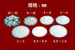 其粒徑從1mm15mm;分成:1-2.5mm2-4mm3-5mm4-6mm5-8mm7-9mm10-13mm13-15mm八個規格。