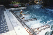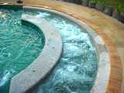 動力涌泉浴 利用池底密集式強力空氣,由水底向上沖涌,制造出水面翻涌奔之動力,讓人其上及四周有不安定搖晃之刺激感,屬于較具有刺激性之休閑娛樂功能。訓練神經平衡感。